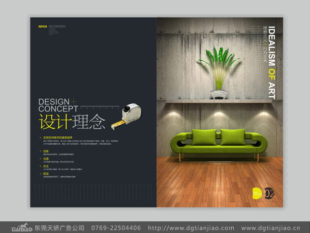 裝飾公司畫冊設計注重藝術性和人文性,是現代高檔裝飾公司畫冊設計訴求的著(zhe)眼點,要注重體現企業的形象,應用恰當的創意和表現形式來展示公示的形象,實力,團隊,規範,品質等,這樣畫冊才能在消費者心裏留下深刻的印象,加深對企業的瞭(le)解。天嬌廣告專業産品攝影、畫冊設計、畫冊印刷一站式服務,打造國内高端畫冊設計第一品牌!