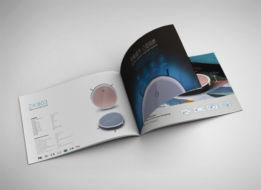 客戶對智能掃地機器人畫冊(cè)設計和智能空氣淨化器宣傳(chuán)冊(cè)印刷很滿意。